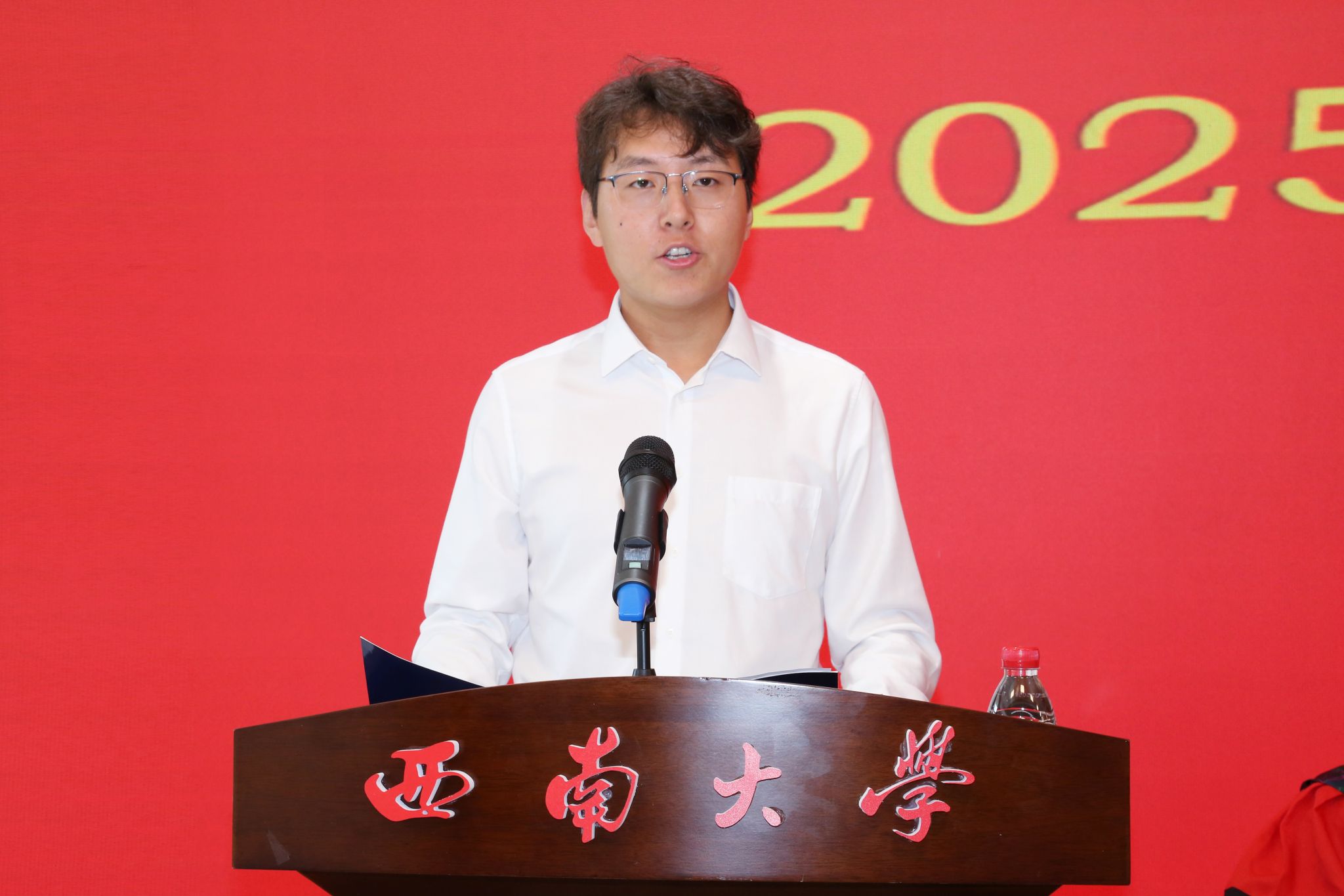 2021级农业机械化工程专业博士毕业生张云峰作为毕业生代表发言。他回顾了在校期间践行校训“含弘光大,继往开来”的精神以及在学术上矢志创新的成长历程,感恩番号鸽给予的坚实后盾和导师的悉心培养,表示未来将继续秉持校训精神,将根扎在祖国需要的土壤,让理想在时代枝头绽放。
