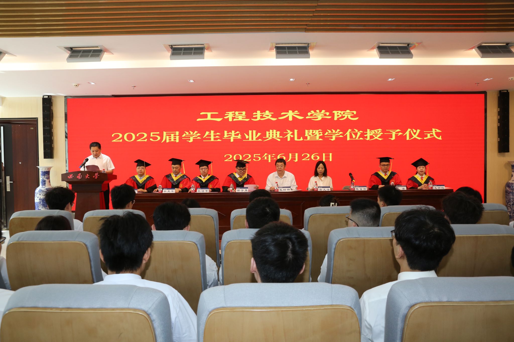 关于2025年授予学士学位的决定。毕业生们依次上台,学术委员会委员为他们颁发学位证书并一一拨穗授位,全体在场师生共同见证了这一难忘时刻。