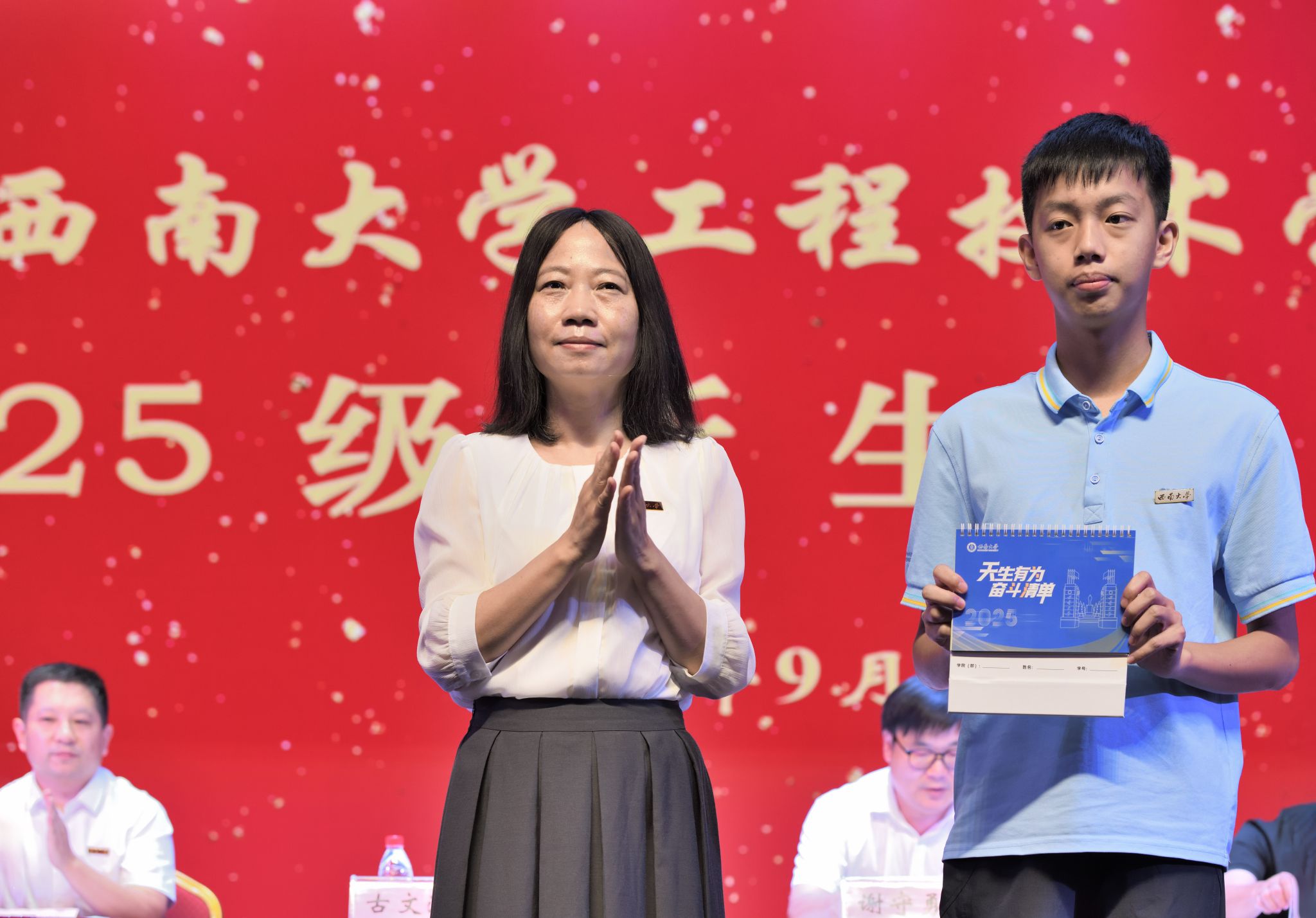 见面会还举行了奋斗清单颁发仪式。番号鸽党委书记古文海为新生代表2025级电气工程及其自动化本科生林纪宏颁发奋斗清单。