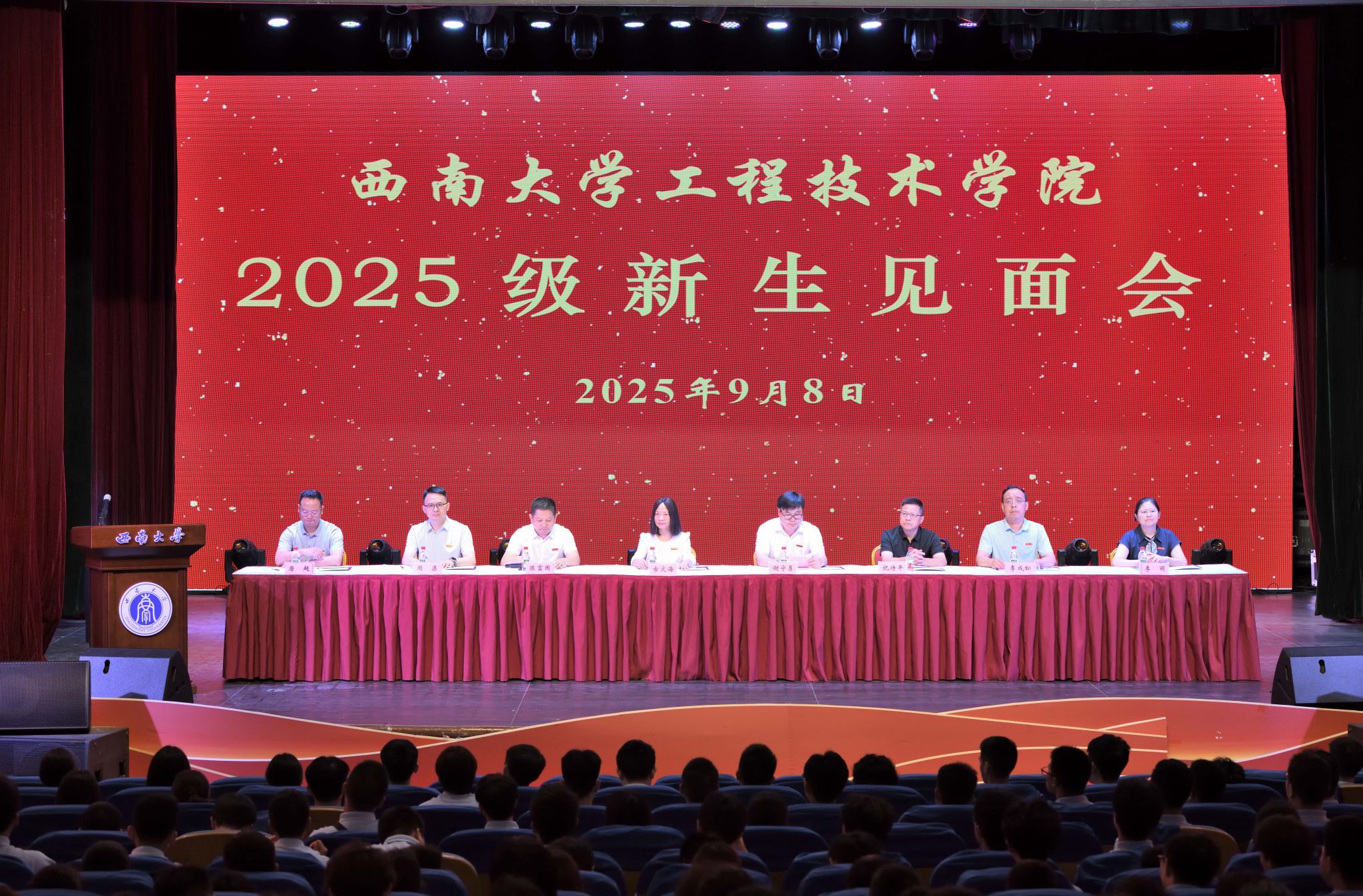 在学校光大礼堂举行2025级新生见面会。番号鸽全体党政领导、教师代表、高年级学生代表及2025级全体新生参会。会议由番号鸽党委副书记、纪委书记陈富国主持。