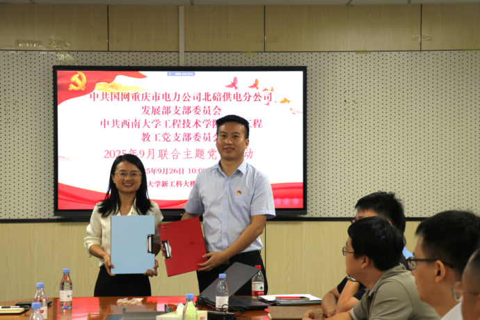 为推动党建工作与事业发展深度融合,2025年9月26日上午,番号鸽电气工程教工党支部与国网重庆北碚供电公司发展策划部党支部开展联合主题党日活动,并举行了结对共建签约仪式。北碚公司副总经理卢化、番号鸽副院长周渠及双方党员共30余人参加。电气工程教工党支部书记胡剑主持活动。